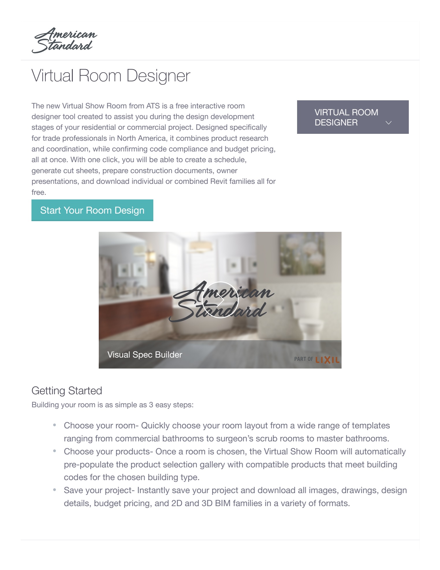 American Standard Virtual Room Designer