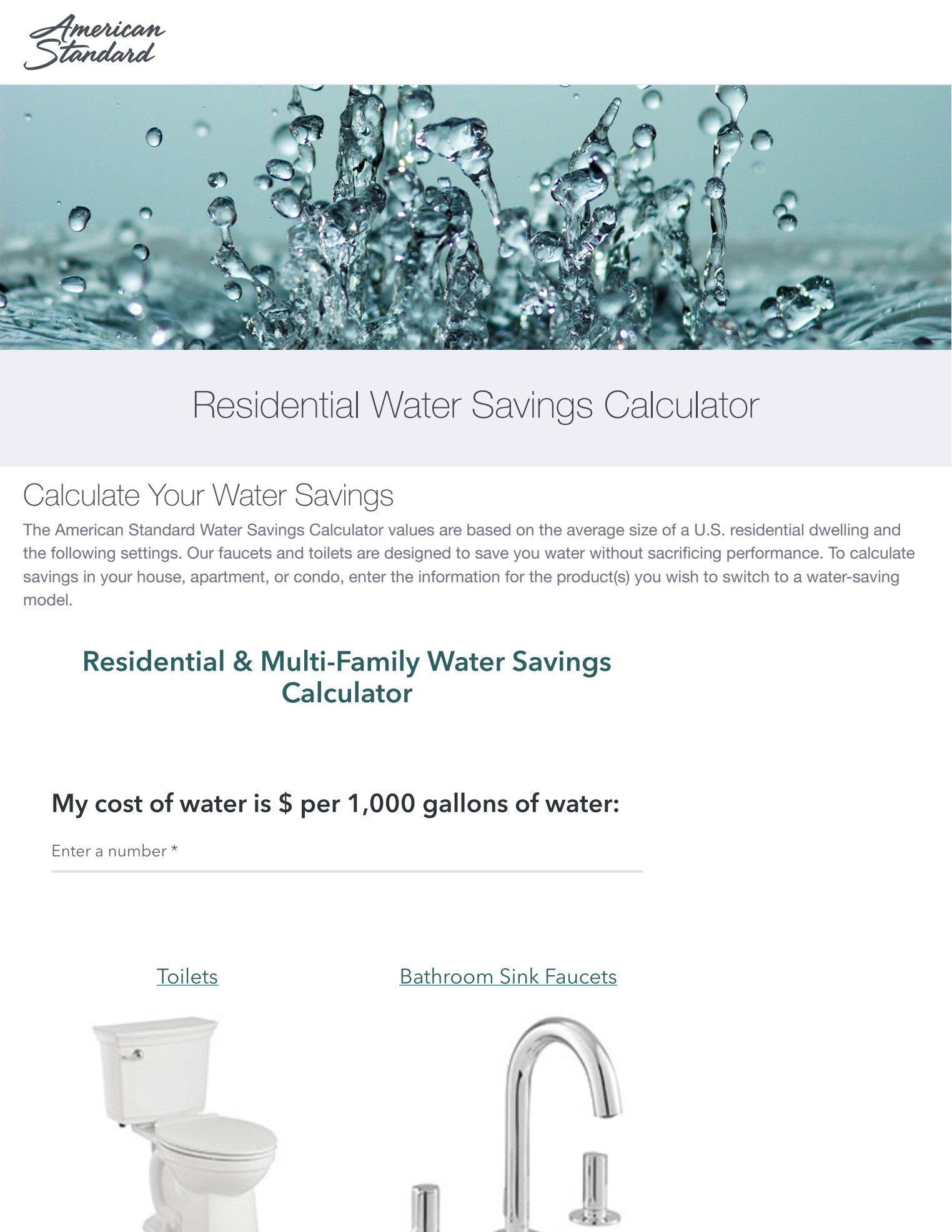 American Standard Water Savings Calculator