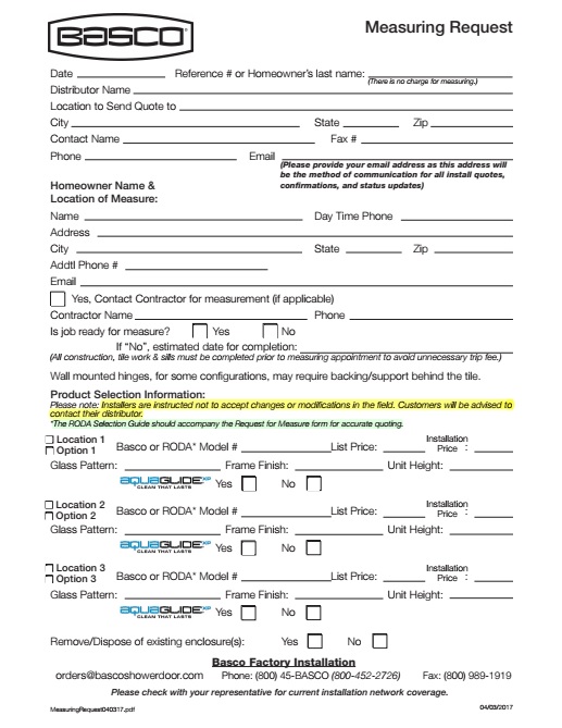 Basco Shower/Tub Measuring Guide